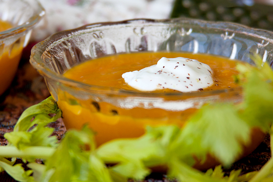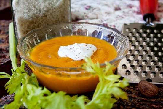 מוזגים לצלחות מרק, מניחים במרכז כף יוגורט, מפזרים מעל ירק קצוץ, או אגוז מוסקט מגורד.