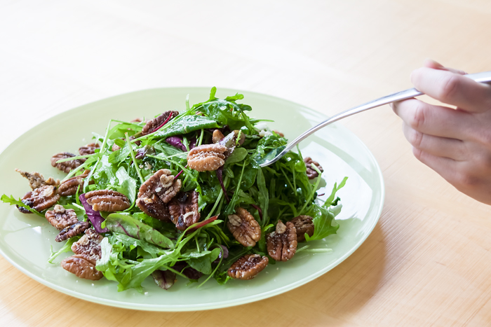 קולים את הפקאנים על מחבת להשחמה קלה ופריכות. כשהם עדיין חמים מפזרים מעל את הקשקבל.