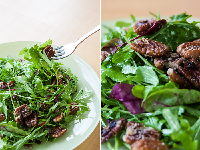 מוסיפים מחצית מהפקאנים ומערבבים.
