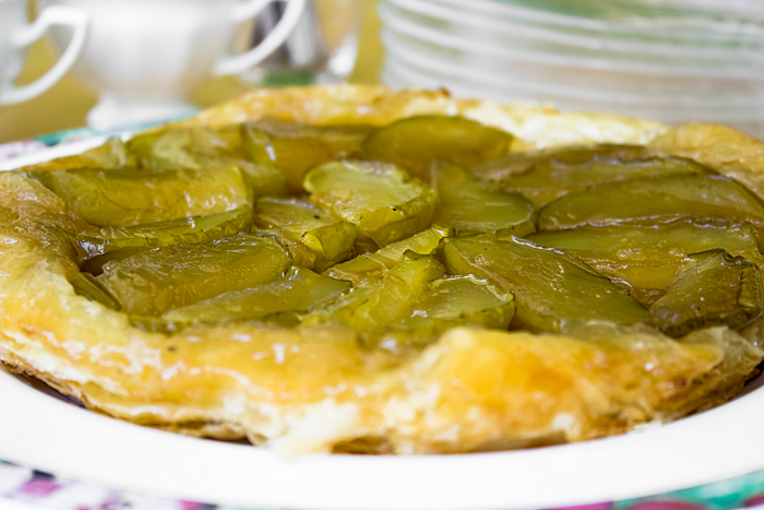 את העוגה ההפוכה הזו מכינים במחבת שיכולה להיכנס לתנור (ללא חלקי פלסטיק, בכלל זה ידית). ב מכסים בבצק עלים גדול, ממיסים במחבת סוכר ומים, מוסיפים פלחי תפוחים, ומכניסים לתנור. מוציאים, מצננים מעט והופכים.