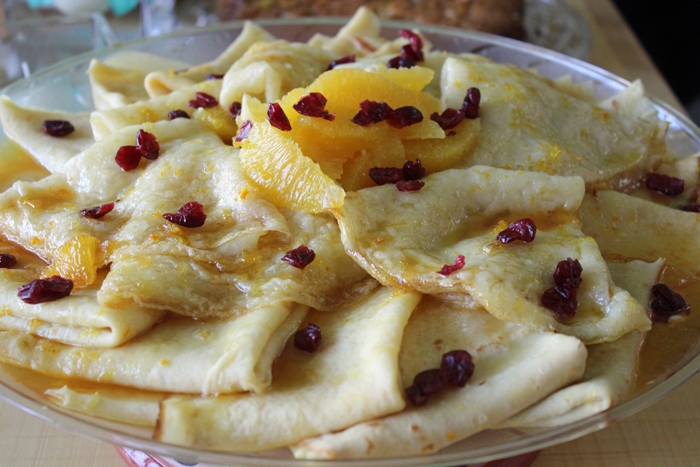 לקינוח – טישפישטי מסורתית, עוגה טבולה בסירופ תפוזים טבעי, וקרפ סוזט ברוטב קרמל תפוזים, כאשר את שניהם ניתן לשכר עם ליקר תפוזים. לצדם ניתן להוסיף קצפת מאינסטנט פודינג, שמנת צמחית ומי קוקוס.