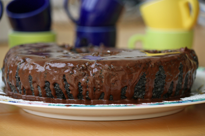 עוגת הפרג שכאן נאפתה בסיר הפלא על הכיריים. אפשר להכניס אותו לאפיה בתנור ללא המכסה, ואפשר כמובן לאפות בתבנית אחרת.