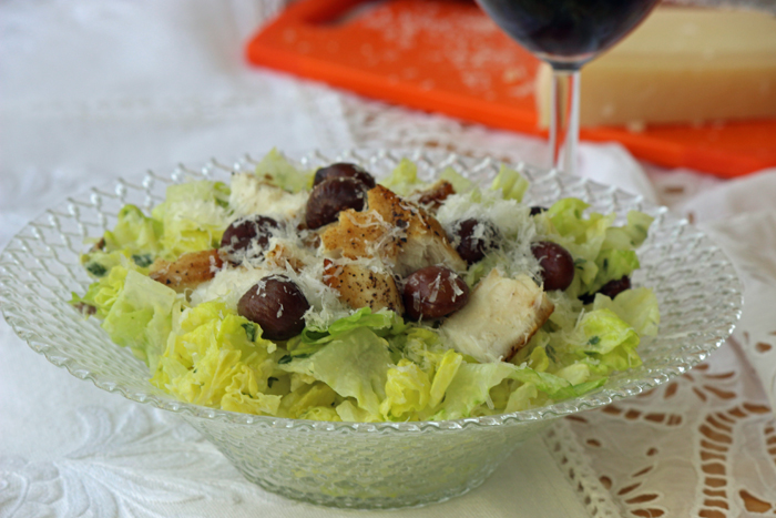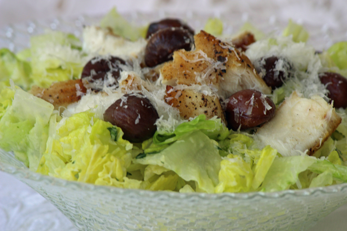 לסלט קיסר נהוג לצרף קרוטונים. הפעם בחרתי בערמונים כתחליף. מתכון להכנת קרוטונים יהיה בסוף, למי שלא מוותר.