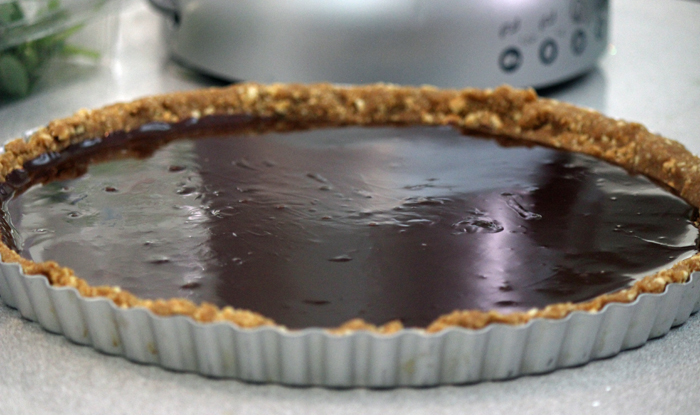 לאחר שעוגת הגבינה ללא אפיה זכתה להצלחה גדולה, התברר לי שכולם מסביבי אוהבים פתי בר, גם כבסיס לעוגות. כיוון שבתכנון היה פאי שוקולד, החלטתי להכין אותו עם בסיס ללא אפיה, במקום פריך. הצלחתי אפילו להוציא ממנו את החמאה, לטובת הבריאות. "זה מטורף", אמר ר', לפני שלקח עוד חתיכה.