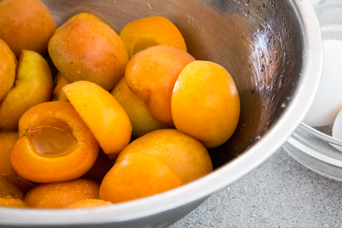 חותכים את הנקטרינות לחתיכות גדולות.