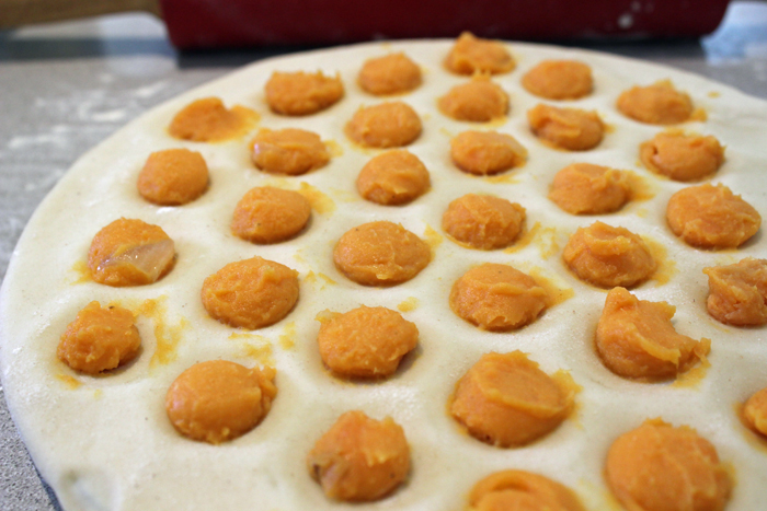 מניחים מלית מעל כל שקע בעזרת 2 כפיות.