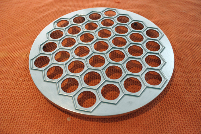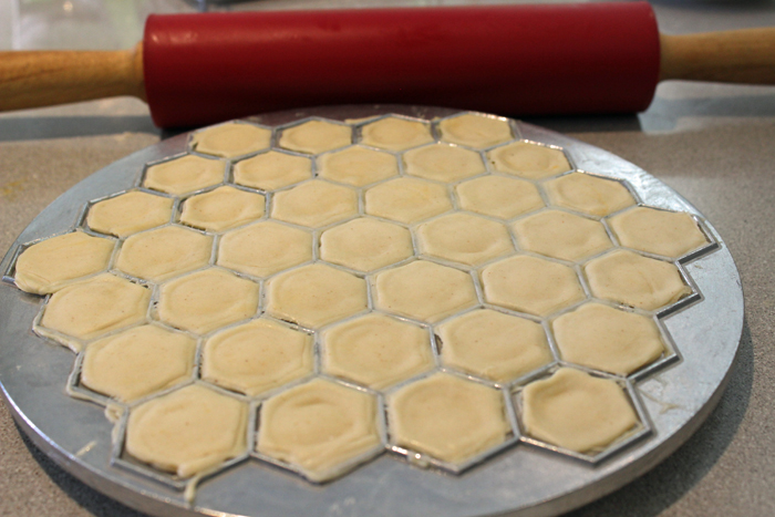 הופכים מעל משטח עבודה מקומח היטב ובחבטות קלות משחררים את יחידות הרביולי מהמכשיר.
