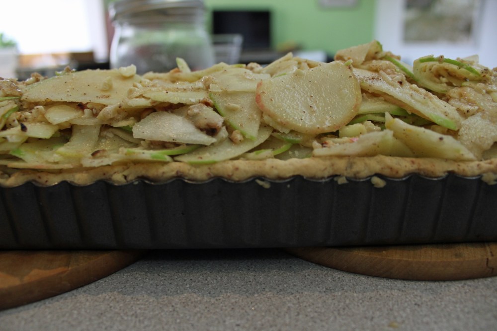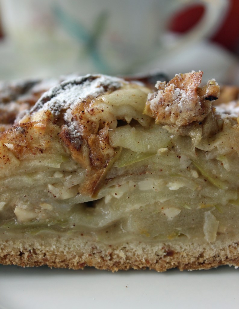 בקיצור – לשים את מרכיבי הבצק ליצירת כדור, מרדדים, משטחים על תבנית ומקפיאים. מרתיחים את מרכיבי הסירופ ומשאירים בצד. פורסים דק את התפוחים, מערבבים עם שאר מרכיבי המלית, מכניסים לבצק הקפוא. מורחים מעל את הסירופ ואופים ב-180 מעלות.