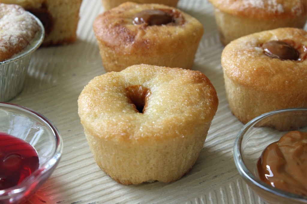 ויש גם טיפ של טריק: אם מכניסים כדור של ריבת חלב לאמצע הבצק שבתבנית לפני האפיה, הוא יוצר "בור" בסופגניה (ראו צילום) מה שמאפשר לאחר האפיה והצינון למלא אותה בקלות בכל טוב כיד הדמיון: עוד ריבת חלב, קצפת, שוקולד או ריבת תות שדה שמחזירה אותי כבר בביס הראשון לילדות ולסופגניות של אמי המדהימה.