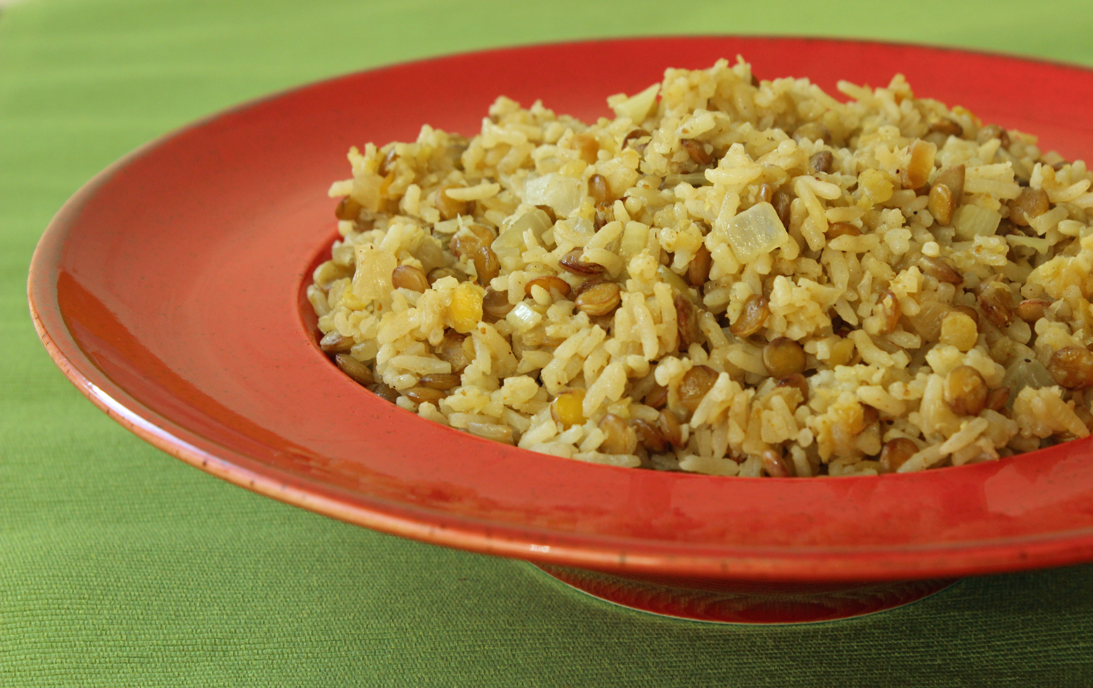 בקיצור – שוטפים אורז ועדשים במים. צורבים על שמן זית בצל וכמון, מוסיפים שום, אורז ועדשים ומערבבים. מוסיפים מים רותחים ומבשלים 15-20 דקות.