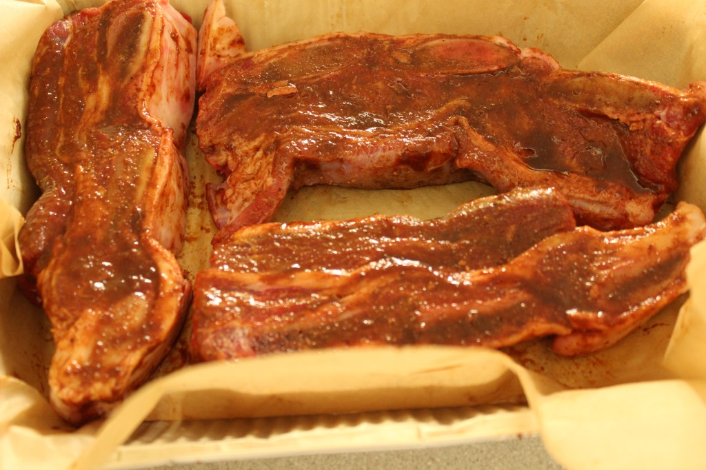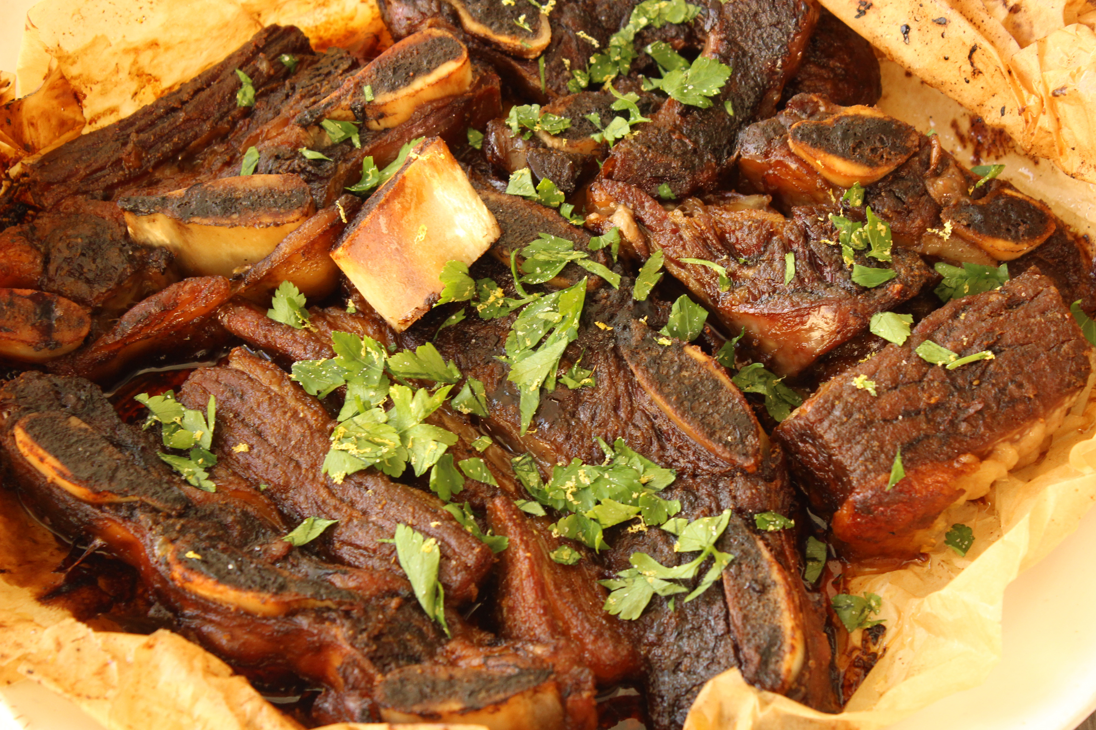 בקיצור – מערבבים את חומרי התערובת, מורחים על הבשר, מניחים בתבנית מרופדת בנייר אפיה, מכסים היטב בנייר אפיה ונייר כסף ומכניסים לתנור שחומם ל-200 מעלות למשך חצי שעה. מורידים טמפרטורה ל-170 מעלות ומשאירים 3.5 שעות. מעלים טמפרטורה ל-250 מעלות, פותחים את ניירות הכסף והאפיה ומשאירים 5 דקות או יותר, לקירמול.