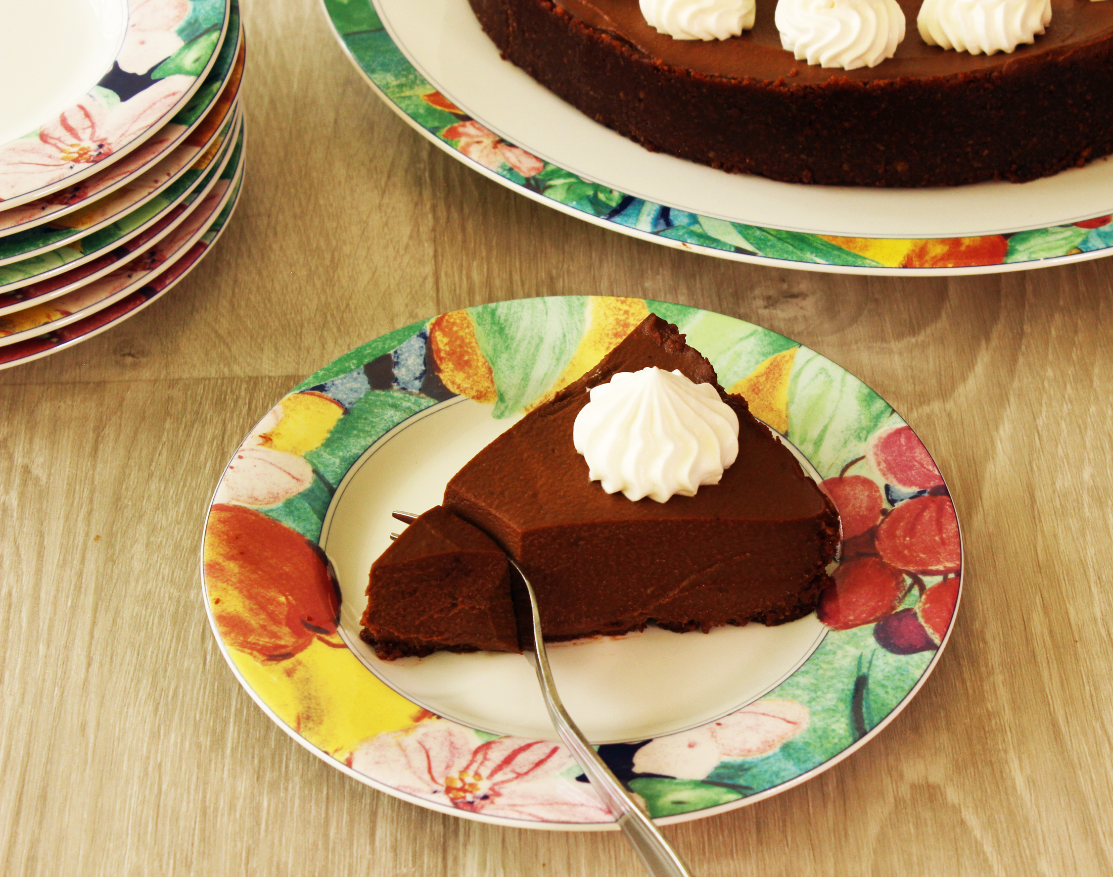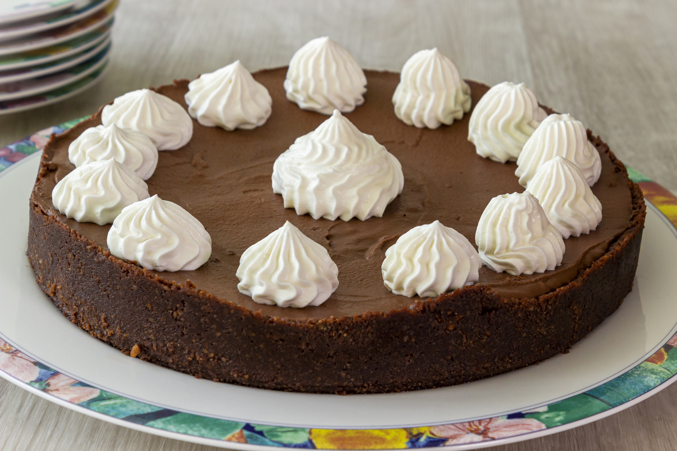 הגבינה שכאן היא למעשה על בסיס אגוזי קשיו, שמכינים בבית בקלי קלות. היא מצריכה 5-10 דקות עבודה, לא יותר. אני מכינה כמות גדולה, מקפיאה בקופסאות של 400-500 גרם ושולפת בשעת הצורך. רק צריך להיערך מראש, כיוון שיש להשרות את הקשיו 5 שעות לפחות (אפשר לילה במקרר) לפני הכנת הגבינה. כדאי לדעת גם, שככל שהשוקולד יהיה יותר איכותי (בלגי, למשל), טעמה של העוגה ישתפר עוד יותר. העוגה צריכה להתייצב במקרר כמה שעות והיא במיטבה יממה לאחר הכנתה.
