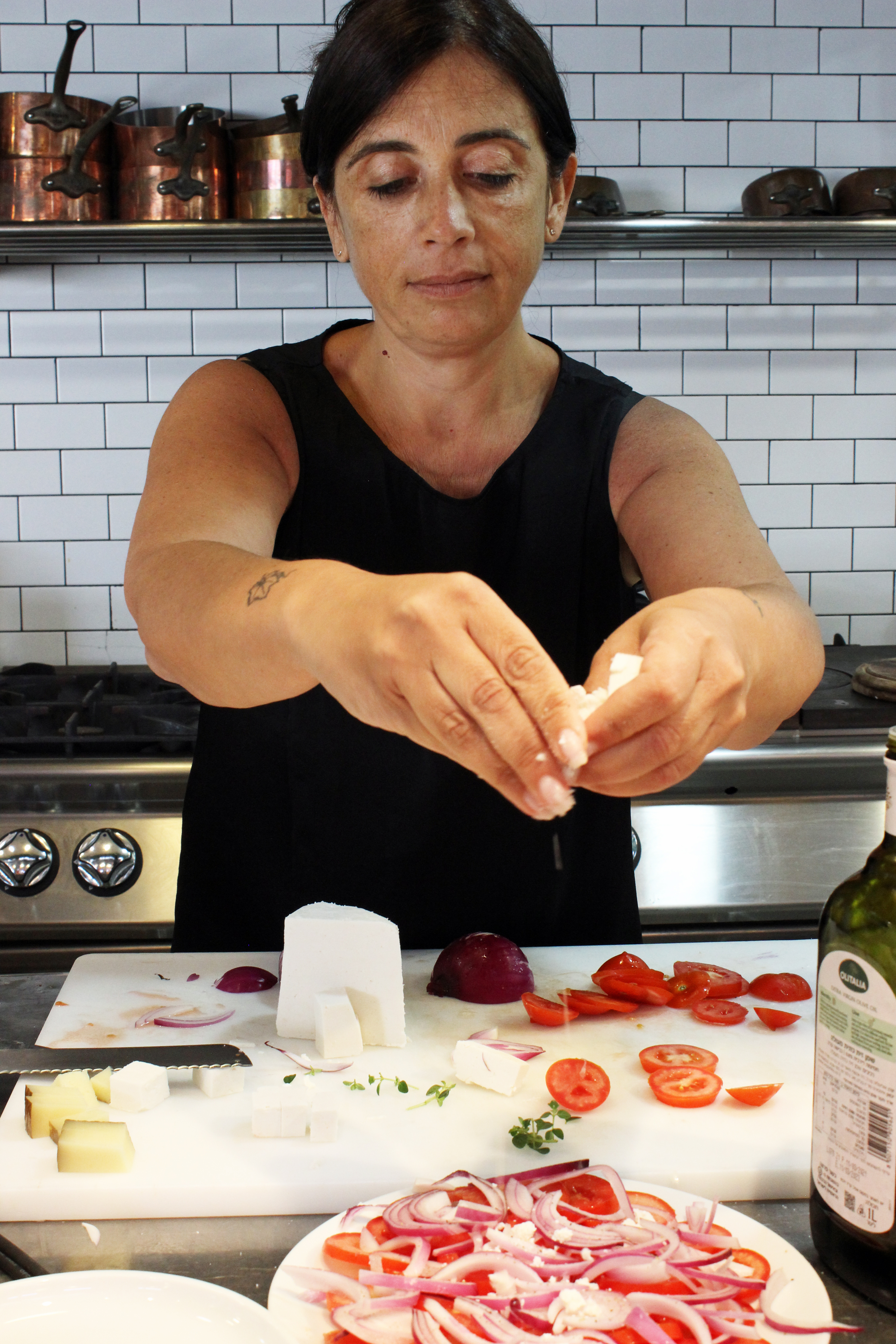 חשבתם שהקפרזה הוא הסלט האיטלקי הקל ביותר להכנה? קבלו את בן הדוד שלו, הסלט של סבתא. בוחרים עגבניות עם קליפה אדומה בוהקת, מוצקות ומתוקות, משקיעים בשמן זית איכותי ודואגים לחופן עלים ירוקים טריים, שיהיו בהישג יד, עדיף מהעציץ שעל אדן החלון. מעל הכל מפוררים את הגבינה האיטלקית המלוחה שנופלת כמו פתיתי שלג, וממתינים בסבלנות. למה? לפתיתי הגבינה, שיספגו את טעמי הסלט. הכי טרי, הכי טעים, הכי פשוט.