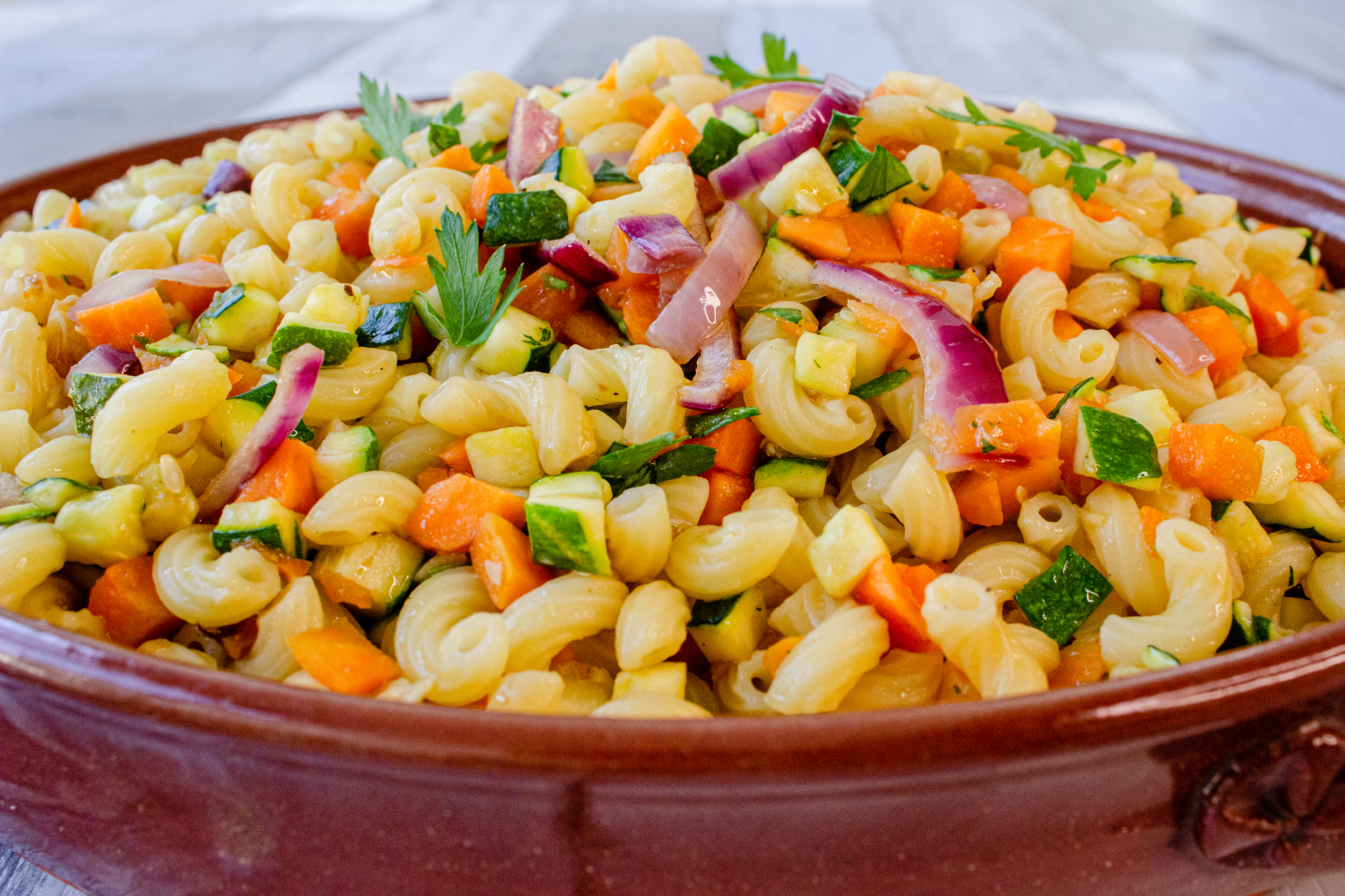 אין כמו הקיץ להגיש מתכוני פסטה קרירים. לא משנה מה מוסיפים לפסטה, הרעיון הכללי משותף: מערבבים הכל ומשאירים כמה שעות (או לילה) במקרר כך שתספוג את הטעמים. תוך כדי, רצוי לערבב 2-3 פעמים עד שלב ההגשה, לספיגה אחידה של הטעמים. את הירקות אפשר להכין בתנור עם שמן זית, או בטיגון זריז בשמן צמחי.