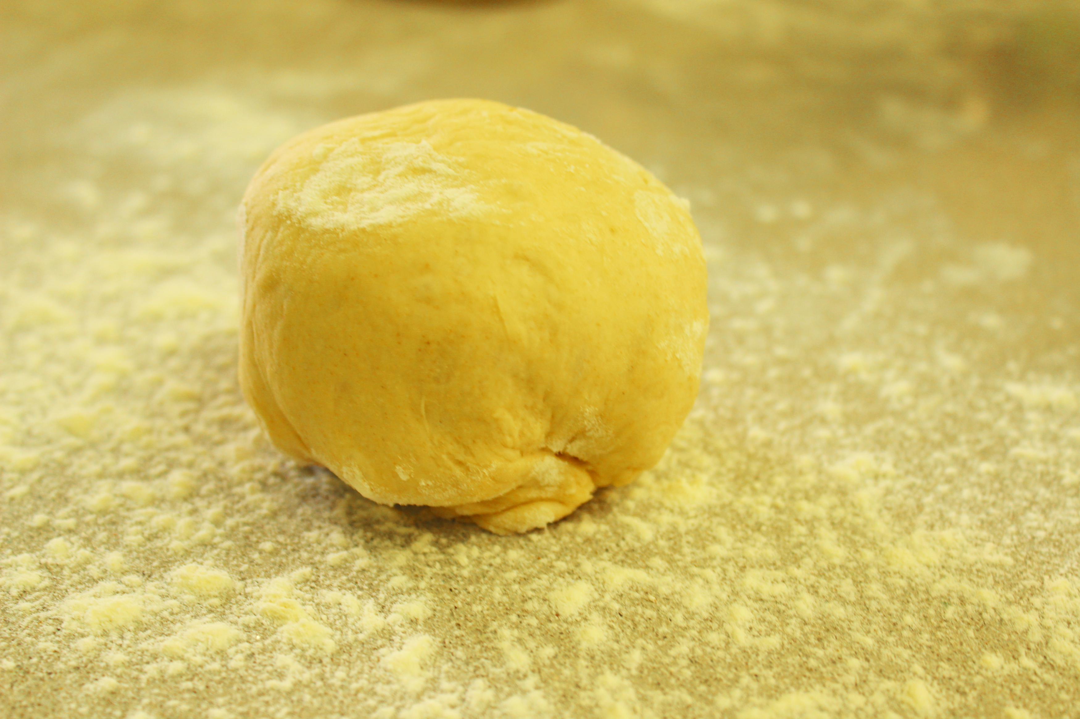 6. אוספים את הקצוות של כל יחידת בצק למרכז היחידה, הופכים על משטח עבודה מקומח קלות ומכדררים לכדור. מניחים בצד ומכסים במגבת. בצורה זו יוצרים 8 כדורים.