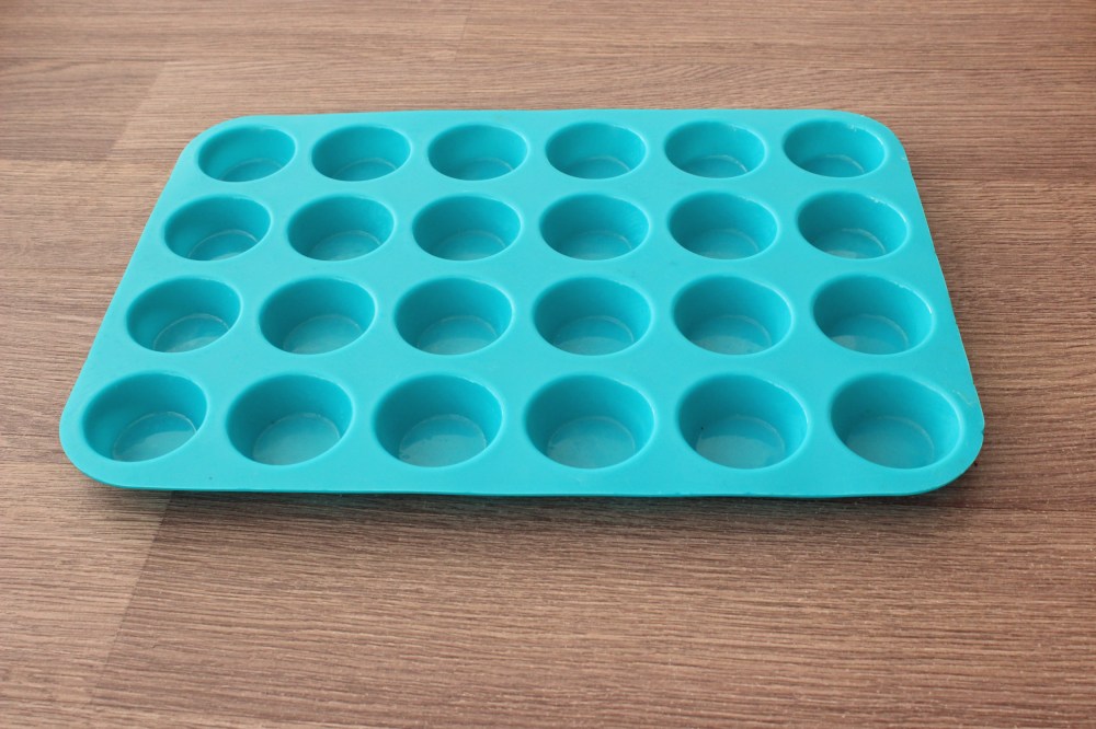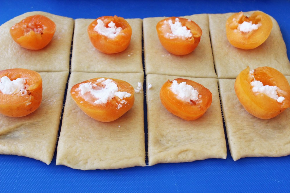 למלית מישמש – מניחים על כל יחידת בצק חצי מישמש כך שאבקת הסוכר מעל וסוגרים בעדינות את הקצוות מעל המישמש. מתקבלת צורה של פטריה קטנה. מניחים הפוך בתבנית סיליקון שקעים, כך שהבצק שנאסף למטה.
