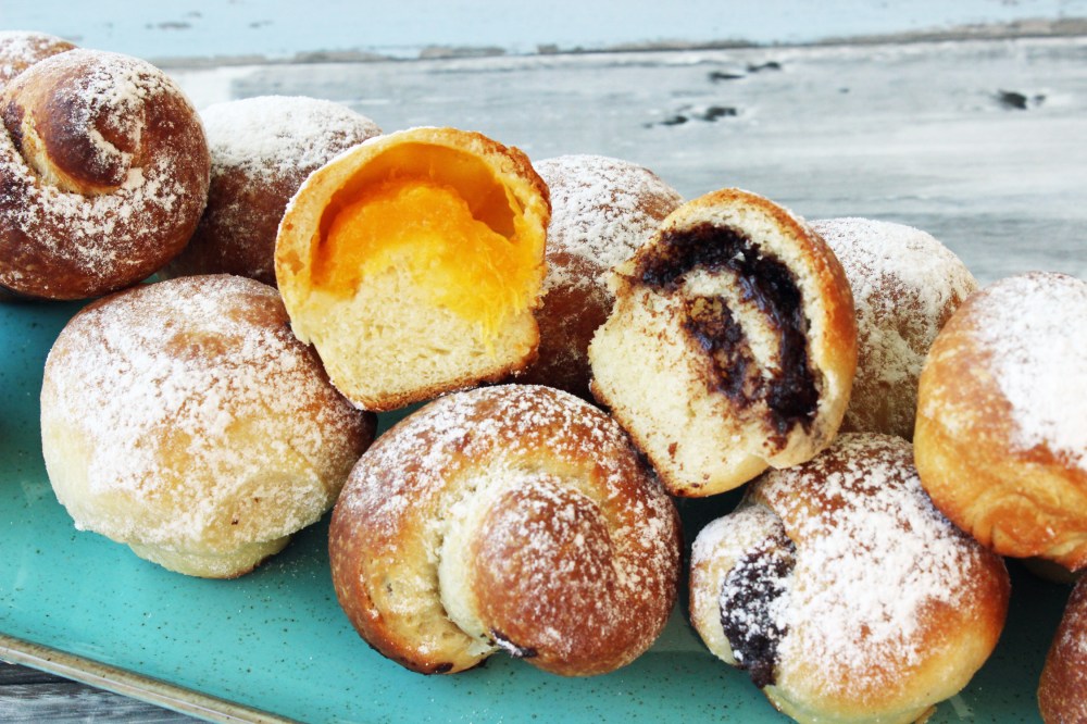 לפעמים רוצים משהו קטן וטוב, וזה בדיוק מה שהמתכון הזה מציע. מיני בריושים, שני ביסים כל אחד. כמובן שאפשר לשחק עם הגודל של הבריוש (והמלית), אבל זה ממש מיותר. מי שנותר ותאוותו בידו – יכול תמיד לקחת עוד אחד, בטעם שונה. לכן הבריושים במתכון מוגשים בשתי מליות, שוקולד ומישמש. המתכון כולל גרסה חלבית וגרסה ללא לקטוז.