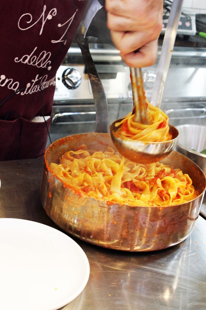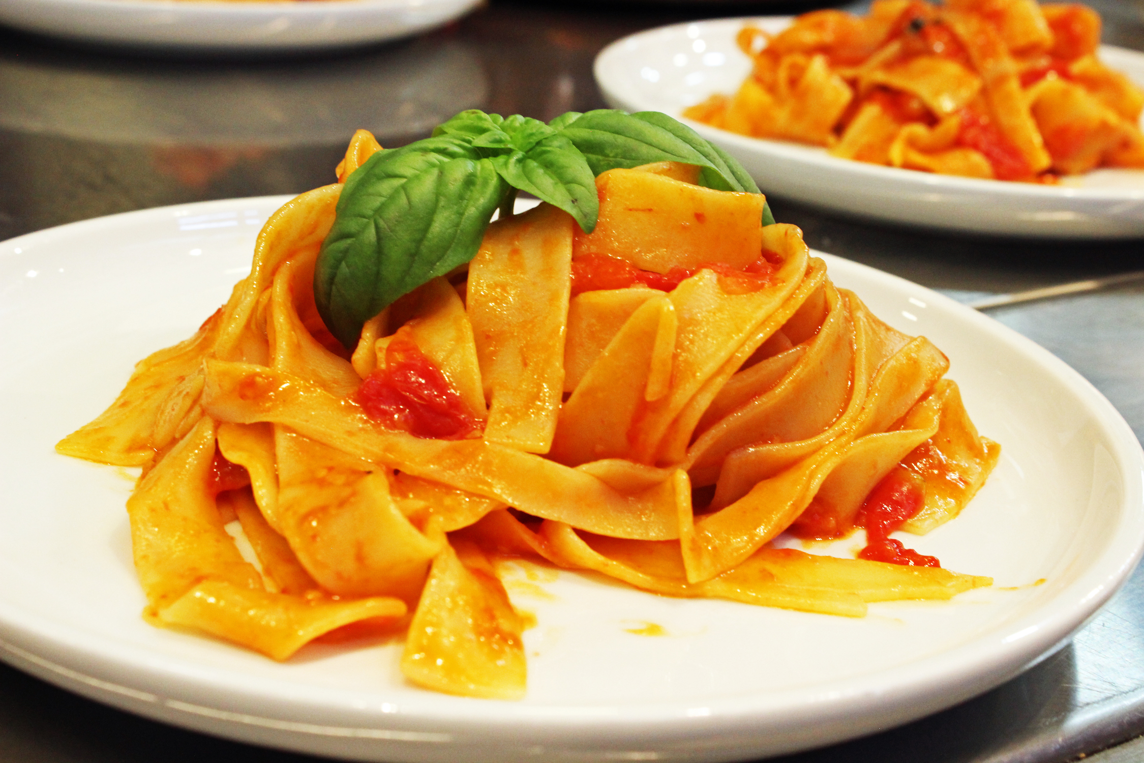 כך, פסטת העגבניות שלנו נאכלה נטו עם הרוטב שלה, ללא חיזוקים של גבינה מגוררת מעל, שחסרונה כלל לא הורגש. לתוספת טעם מוסיפים רק בזיליקום טרי קרוע ביד, חלילה לא חתוך בסכין מתכת, שפוגם בטעמו.