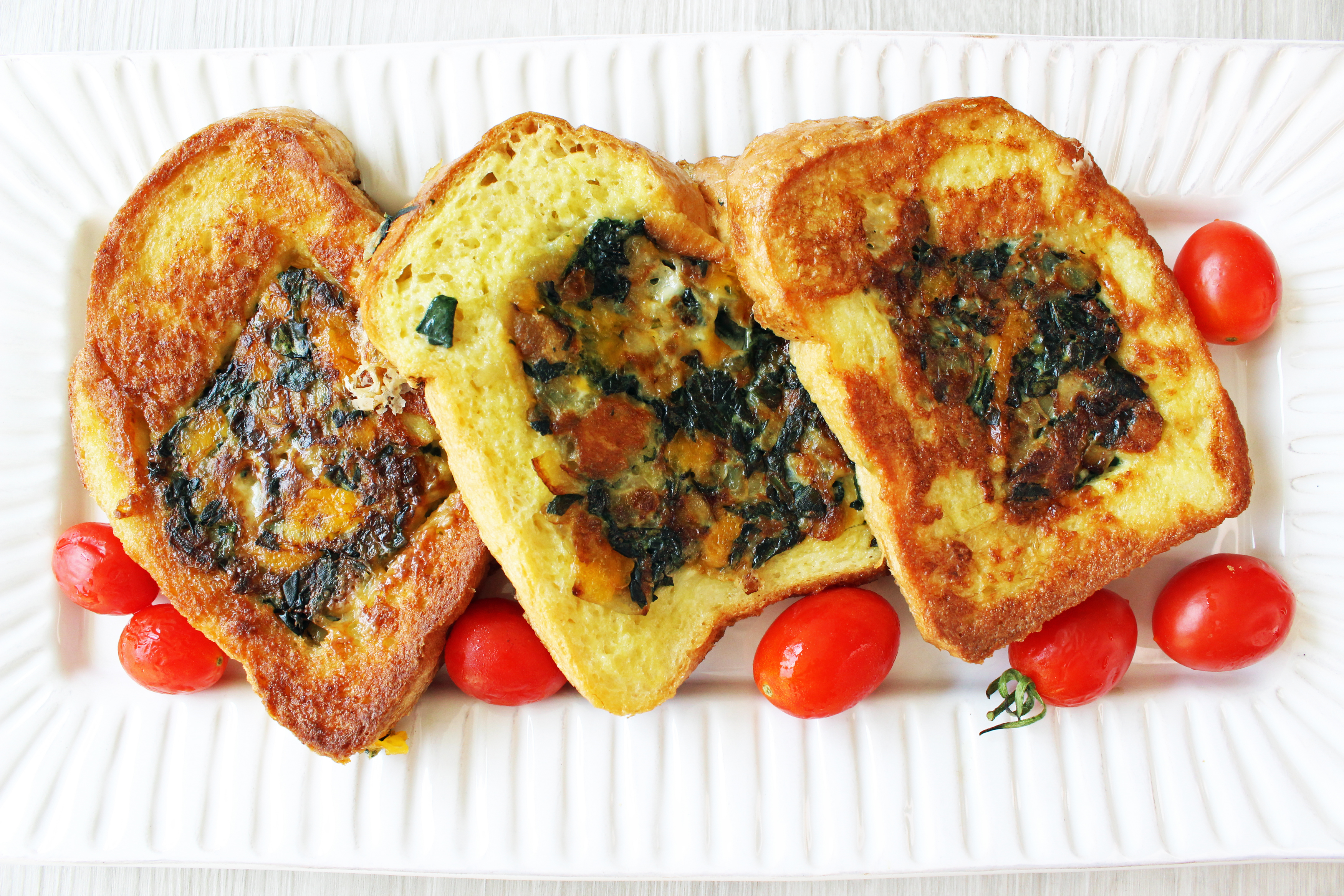 לקחתי את החלה המטוגנת, או אם תרצו את הביצה בקן שלב אחד קדימה. בכל מקרה, הרעיון פשוט: יוצרים חור גדול במרכזה של פרוסת חלה רגילה, ממלאים אותו במה שאוהבים להכניס לפאי, טובלים בביצה ומטגנים הכל. אני מעדיפה חלה רגילה, כיוון שהיא סופגת טוב יותר את הביצה לעומת חלה מתוקה.