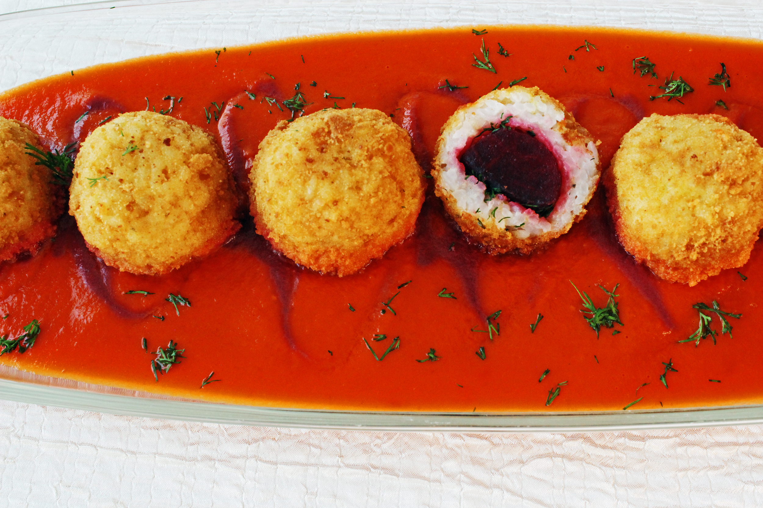 הגרסה הטבעונית שבחרתי כוללת שתי חלופות. כדור סלק מבושל מתובל, או תרד עם קוביית מוצרלה טבעונית.