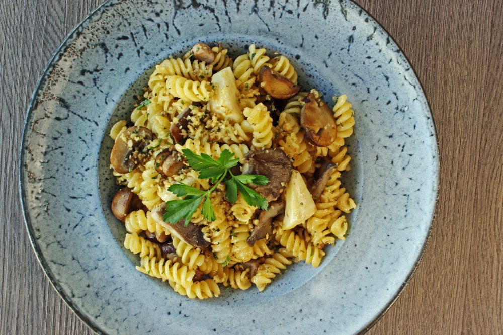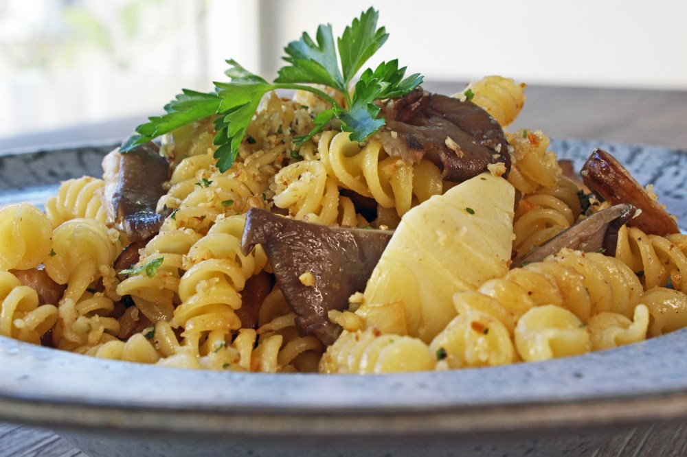 פסטה לבבות ארטישוק ופטריות ברוטב שום