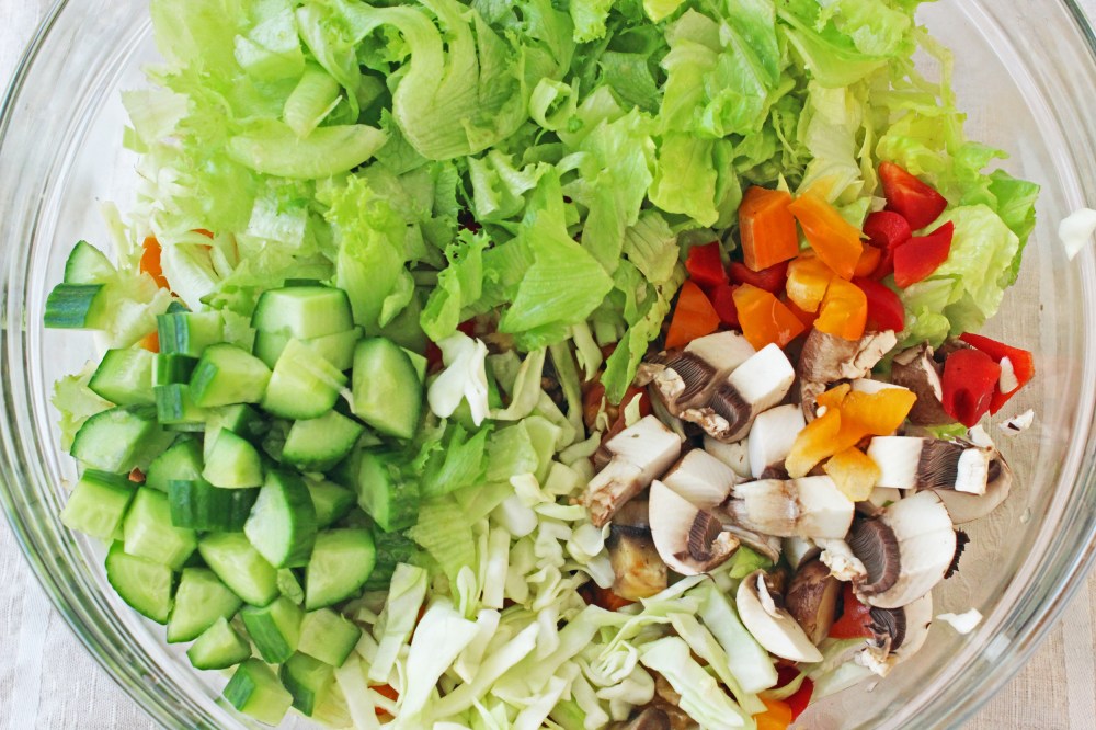 מערבבים הכל כולל תבלינים. אפשר להוסיף למיץ הלימון מעט שמן זית עדין, כזה שלא ישתלט על טעמם של הירקות הטריים, אבל יוסיף טעם לרוטב. טועמים ומתקנים תיבול.