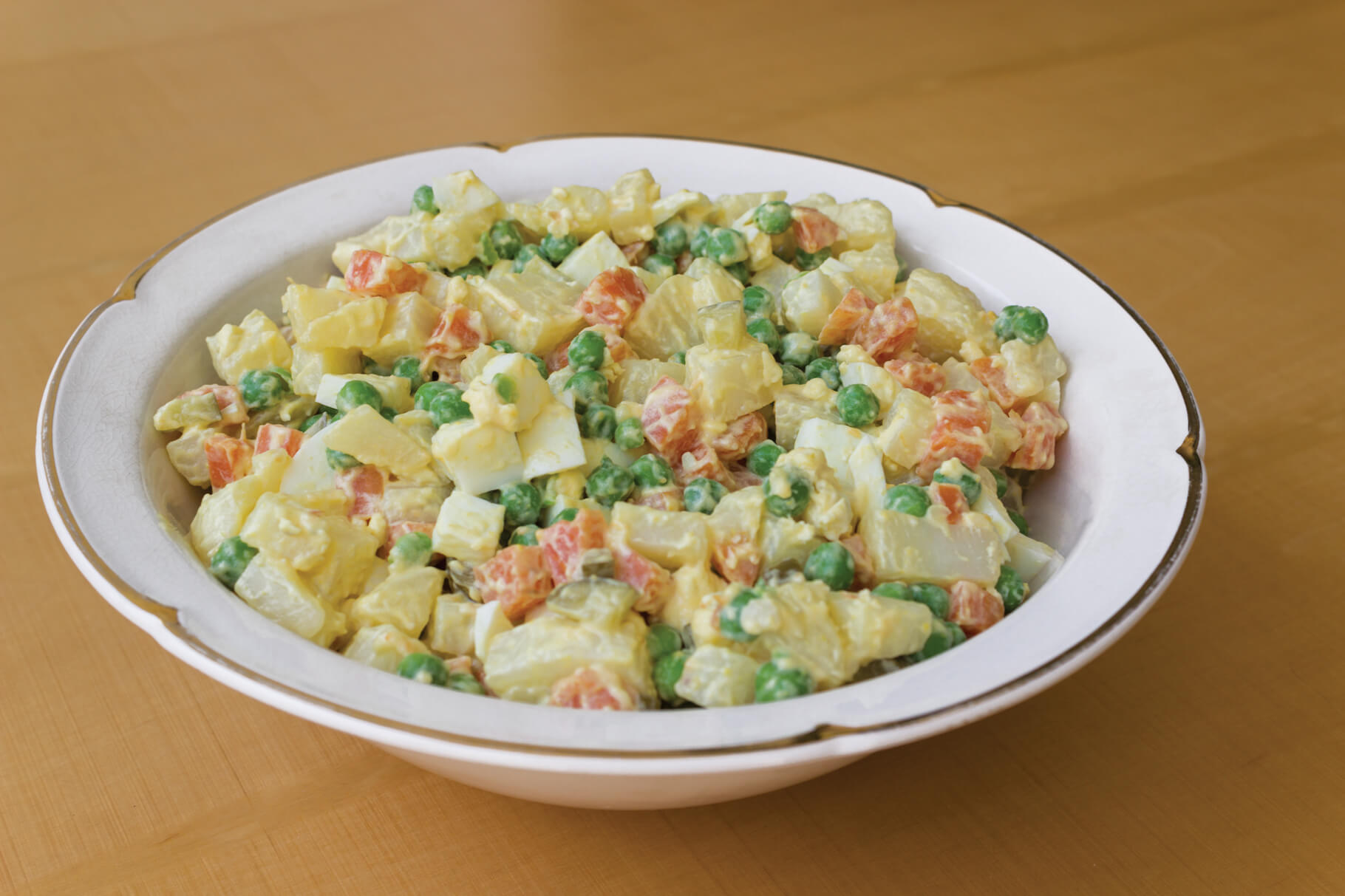 סלט אוליביה. מומלץ להשתמש במיונז דל קלוריות ולהוסיף מעט שמיר קצוץ