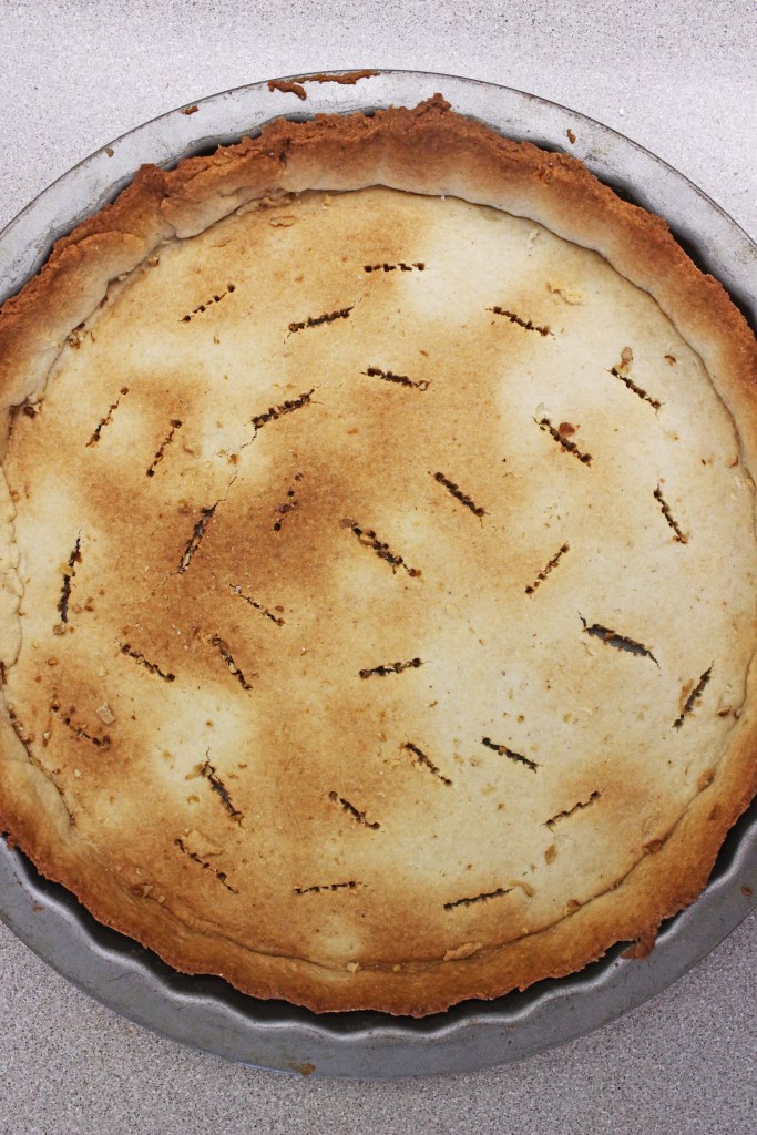 מוציאים את הבצק למשטח עבודה מקומח מעט ומגבשים לכדור לא דביק. משמנים היטב תבנית פאי כולל הדפנות, מרדדים את הבצק ומעבירים אותו לתבנית כך שיכסה גם את הדפנות. מצמידים לדפנות ולבסיב עם האצבעות. מחוררים עם מזלג, מכסים בניילון ומכניסים להקפאה. היא תשמור עליו שלא יתכווץ בתנור. לאחר שהבצק קפא היטב (כשעתיים או יותר) מעבירים את התבנית (ללא הניילון) לתנור שחומם ל-180 מעלות עד להזהבה-השחמה קלה.