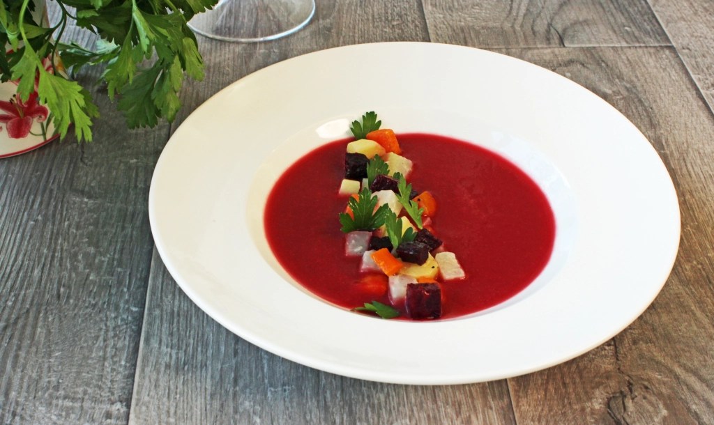 המתכון שלו פשוט: לוקחים עגבניות גדולות בשלות וטעימות במיוחד (אחת גדולה תתאים למנה בינונית), מוציאים את העוקץ (החלק הירוק שמחבר את העגבניה לשיח), חותכים לרבעים ומכניסים לבלנדר חזק עם מעט פלפל חריף (כל אחד לפי טעמו) ומלח. טוחנים הכל לקבלת מחית אוורירית ללא גושים. יוצקים לכוסות ונהנים. מזכיר בלאדי מרי רק ללא אלכוהול. מי שרוצה יכול להשתעשע עם תוספת קטנה של וודקה למרק.
